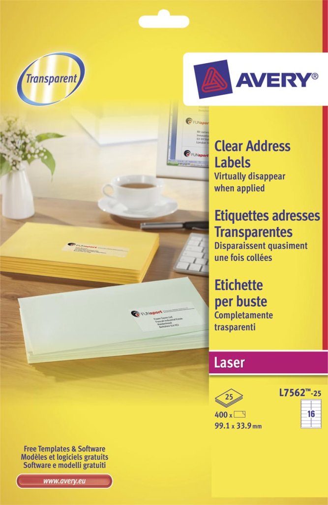 25 flles étiq. laser Avery 16 x 99/34 mm. - transparent