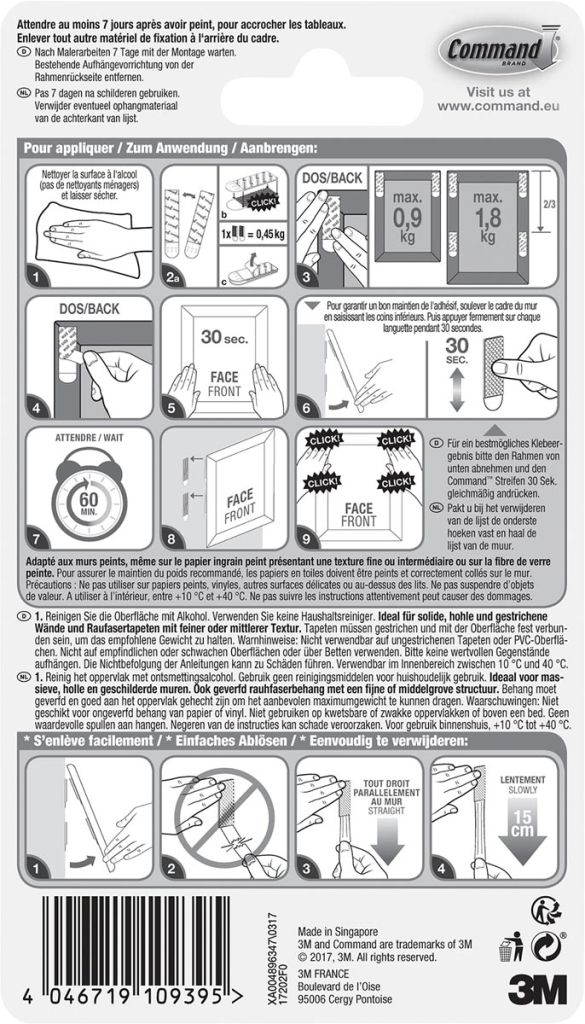 - Les languettes de fixation de recharge vous permettent de déplacer et de prendre facilement vos produits et cas de nettoyage, redécoration ou réorganisation de vos pièces
