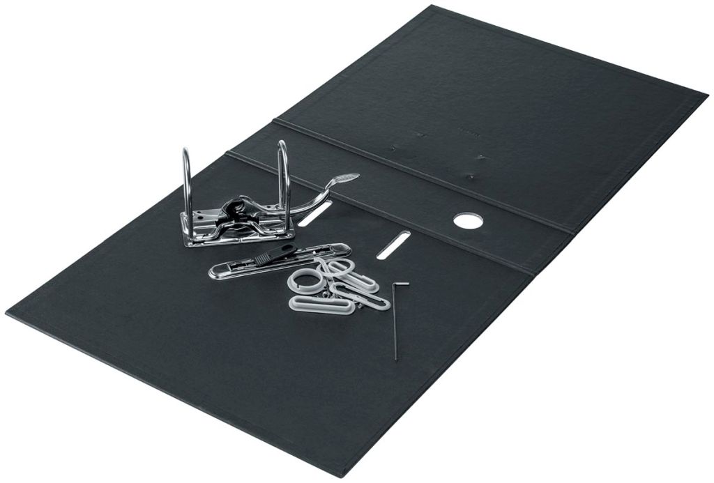- Avec mécanisme à levier 180°, pour ouverture plus grande de 50 % et archivage plus rapide de 20 % Avec passe-doigt avec etiquette de dos Certificat: FSC Mixte, Ange Bleu Matériaux recyclés: 100 % (couverture) Recyclable: 100 % dos de 8 cm, noir