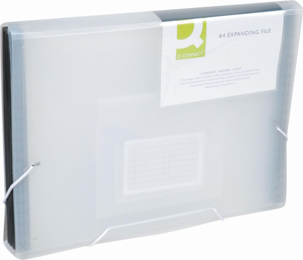 Q-CONNECT trieur, A4, PP transparent, avec 13 compartiments, fermeture à élastiques, transparent