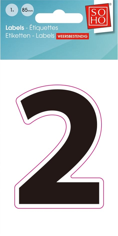 SOHO étiquettes chiffres, 2, ft 85 mm, noir, blister de 1 pièce