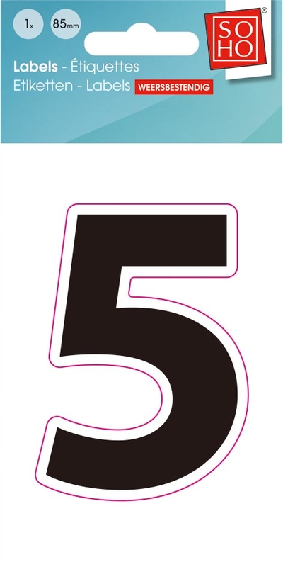 SOHO étiquettes chiffres, 5, ft 85 mm, noir, blister de 1 pièce