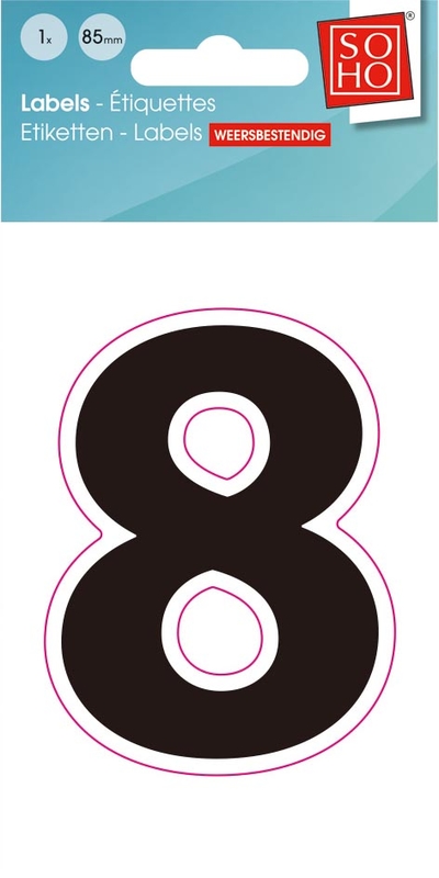 SOHO étiquettes chiffres, 8, ft 85 mm, noir, blister de 1 pièce