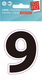SOHO étiquettes chiffres, 9, ft 85 mm, noir, blister de 1 pièce