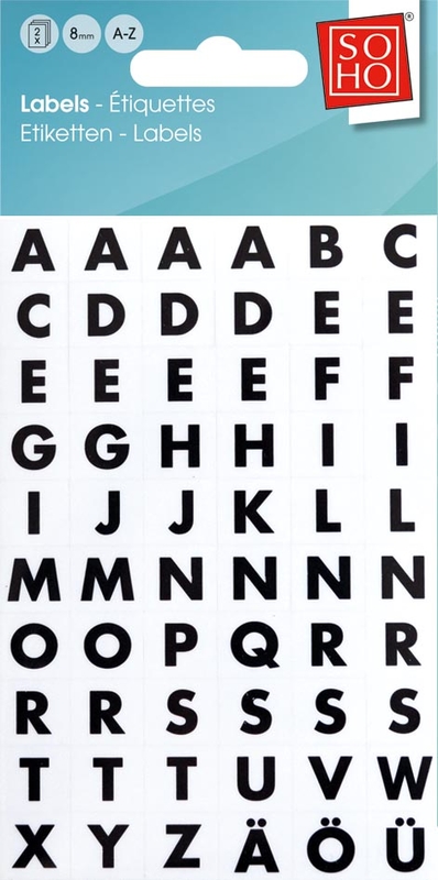 SOHO étiquettes lettres, A-Z, ft 8 mm, noir, blister de 2 pièces