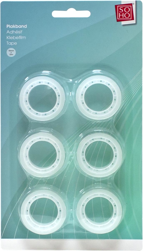 SOHO ruban adhésif, 18 mm x 10 m, transparent, blister de 6 pièces