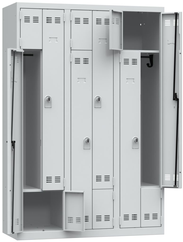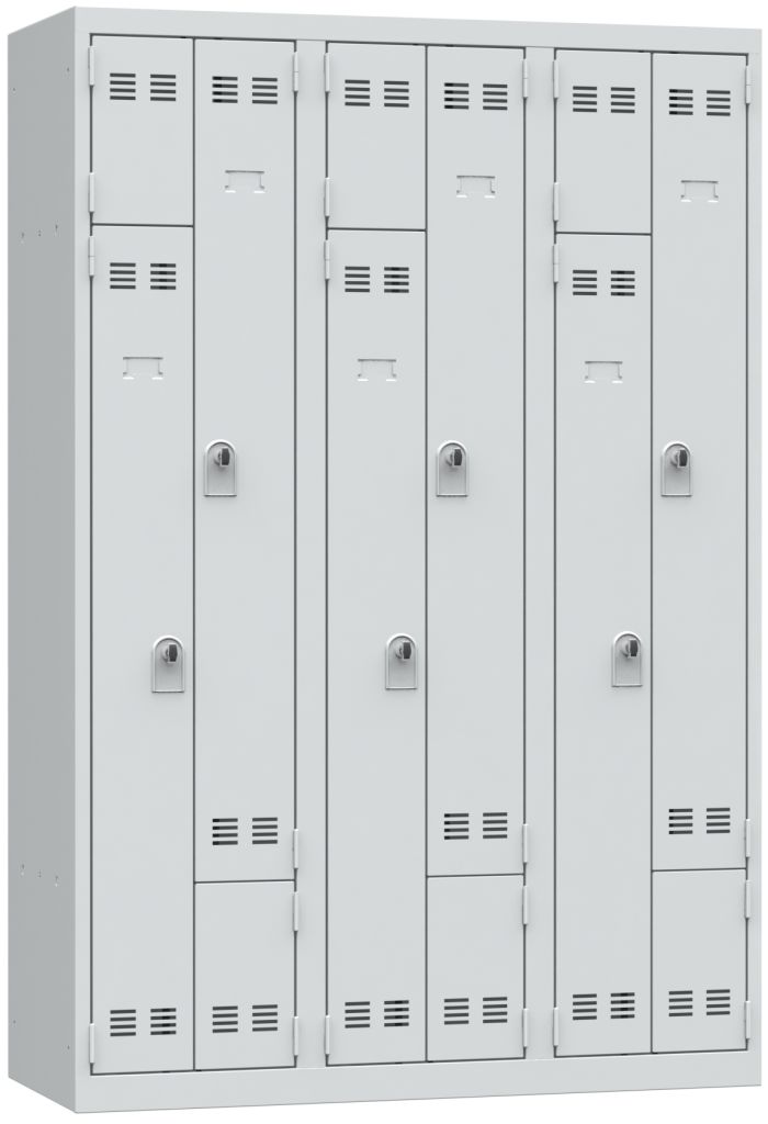 Vestiaire monobloc gain de place, 3 colonnes, 180 x 120 cm, gris