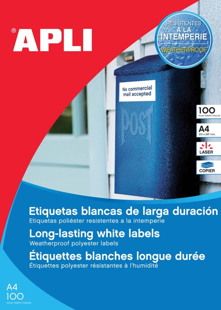 Apli etiket 210x297mm, 1/blad, wit, waterbestendige, 100 vel