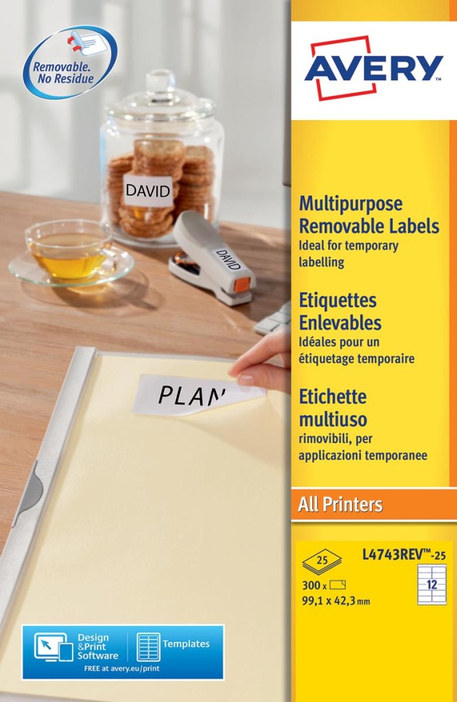 Avery Afneembare Etiketten Ft 99,1 X 42,5 mm, 300 Stuks, 12