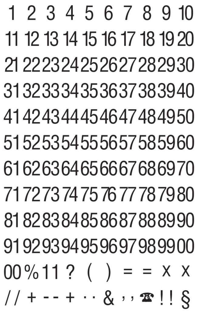 - 1-100, hoogte letters: 6,5 mm, 2 vel, zwart op wit