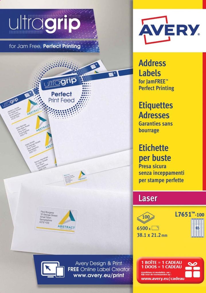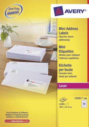 - ft 38,1 x 21,2 mm, doos van 100 blad, 6.500 stuks, geschikt voor inkjet- en laserprinters