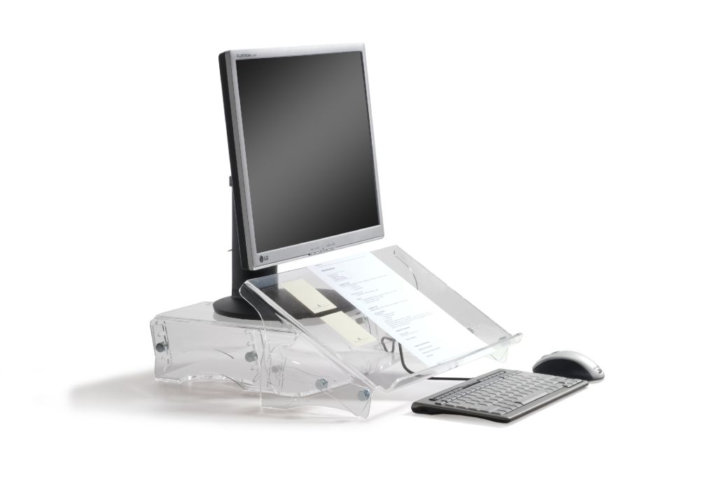Om rotatie in de nek te voorkomen is het noodzakelijk dat documenten tussen het scherm en het toetsenbord geplaatst worden. Een hellend werkvlak vermindert de buiging van de nek en verhoogt daarmee het werkcomfort. De 'in-line' documenthouder zorgt ervoor dat er één functioneel werkvlak wordt gecreëerd en korte kijkafstanden tussen document - beeldscherm en toetsenbord.