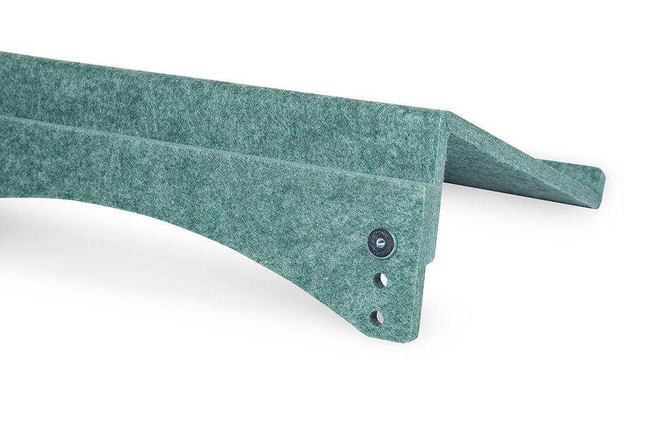- Plastic flessen worden verwerkt tot flakes, die op hun beurt verwerkt worden tot granulaat. Dit granulaat wordt uiteindelijk een PET-viltplaat.