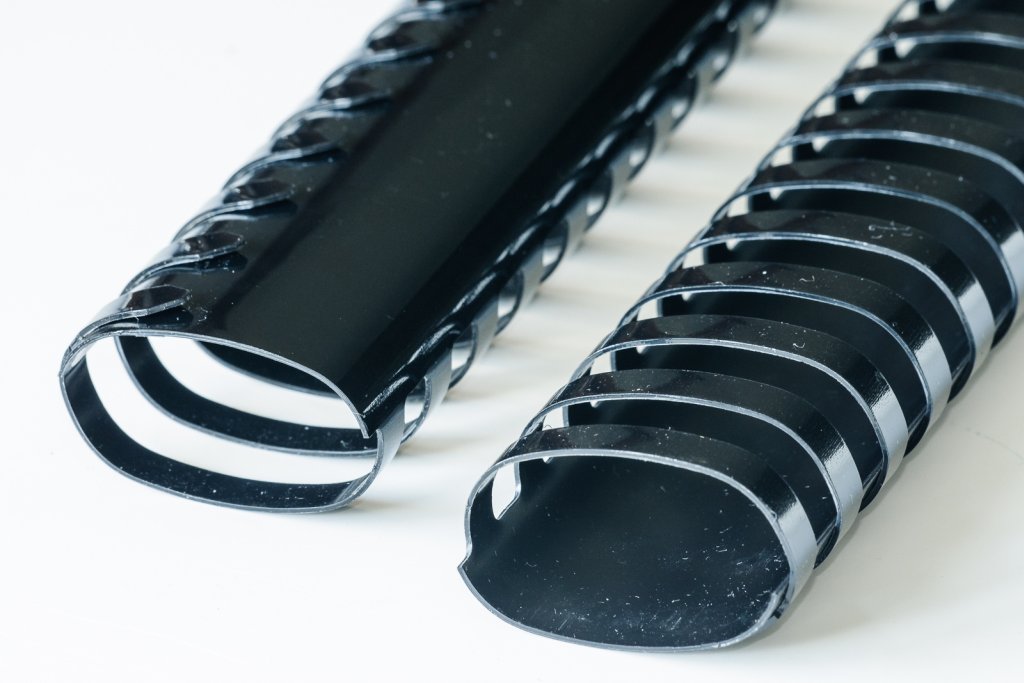 - Zelfs 50 jaar na de introductie van inbinden met plastic bindruggen wordt dit nog steeds gezien als één van de beste methodes om documenten in te binden.