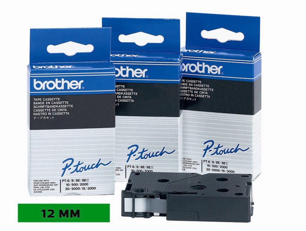 Kenmerken: - gelamineerd tape; - zwart op groen; - breedte tape 12 mm en lengte 7.7 meter; - geschikt voor Brother PT-8E, PT-2000, PT-3000 en PT-5000.