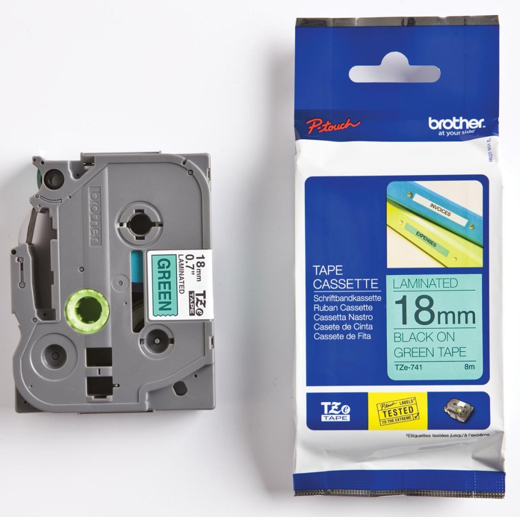 Brother P-touch tape 18 mm zwart op groen - TZE-741
