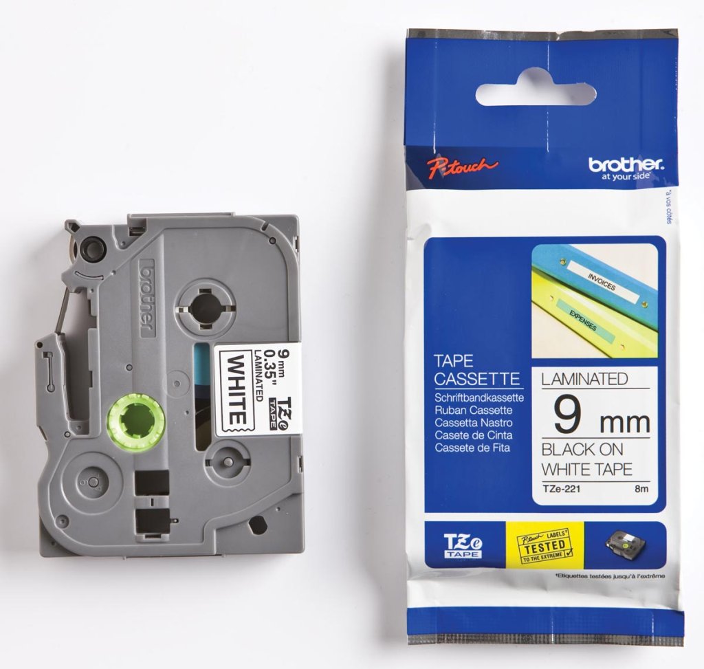 Brother P-Touch tape 9 mm - zwart op wit - TZE-221