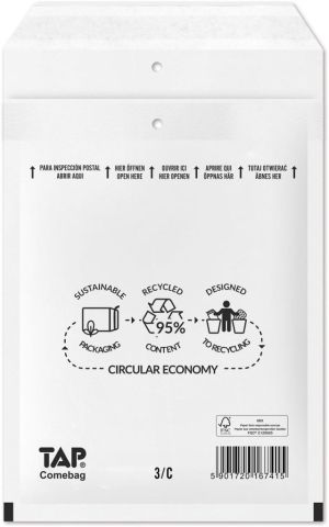Comebag luchtkussenenveloppen, ft 150 x 215 mm, met stripsluiting, wit, doos van 100 stuks