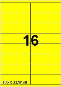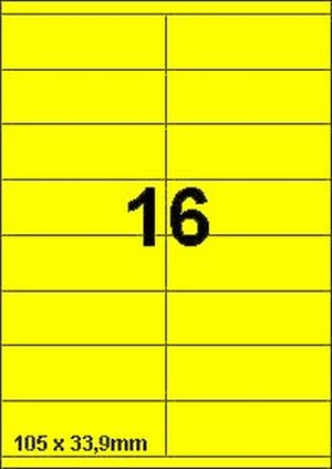 DBS etiketten 105 x 33,9 mm, 16 per blad, fluo geel, 200 vel