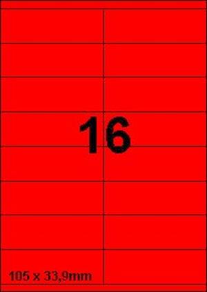 DBS etiketten 105 x 33,9 mm, 16 per blad, fluo rood,200 vel