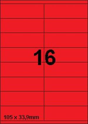 DBS etiketten 105 x 33,9 mm, 16 per blad, rood, 200 vel