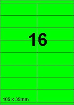 DBS etiketten 105 x 35 mm, 16 per blad, fluo groen, 200 vel