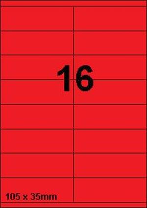 DBS etiketten 105 x 35 mm, 16 per blad, rood, 200 vel