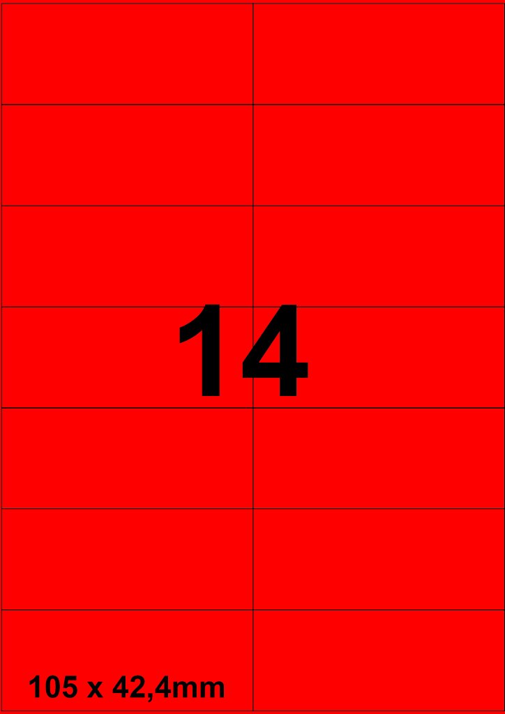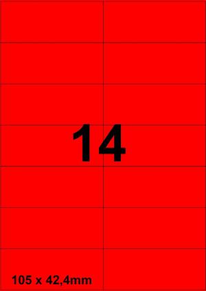 DBS etiketten 105 x 42,4 mm, 14 per blad, fluo rood,200 vel