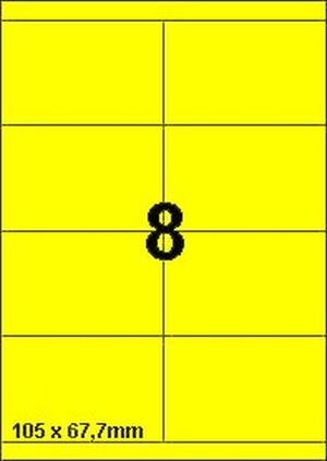 DBS etiketten 105 x 67,7 mm, 8 per blad, fluo geel, 200 vel