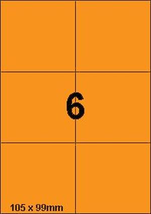 DBS etiketten 105 x 99 mm, 6 per blad, fluo oranje, 200 vel