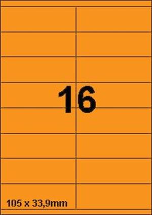 DBS etiketten 105x33,9 mm, 16 per blad, fluo oranje, 200 vel