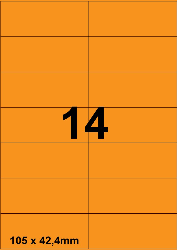 DBS etiketten 105x42,4 mm, 14 per blad, fluo oranje, 200 vel
