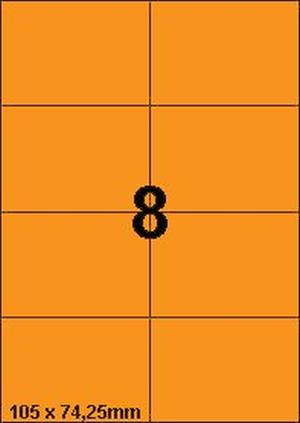 DBS etiketten 105x74,25 mm, 8 per blad, fluo oranje, 200 vel
