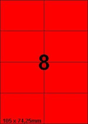 DBS etiketten 105x74,25 mm, 8 per blad, fluo rood, 200 vel