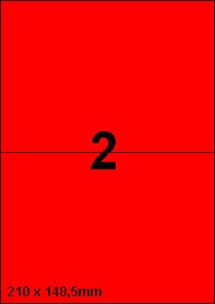 DBS etiketten 210x148,5 mm, 2 per blad, fluo rood, 200 vel