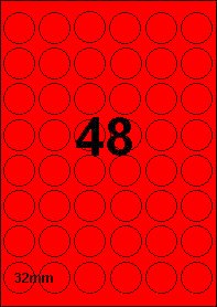 DBS etiketten 32 mm dia, 48 per blad, rood, 200 vel
