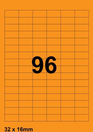 DBS etiketten 32 x 16 mm, 96 per blad, fluo oranje, 200 vel
