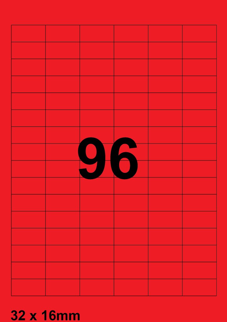 DBS etiketten 32 x 16 mm, 96 per blad, rood, 600 vel