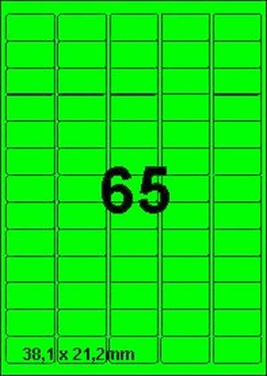 DBS etiketten 38,1x21,2 mm, 65 per blad, fluo groen, 200 vel