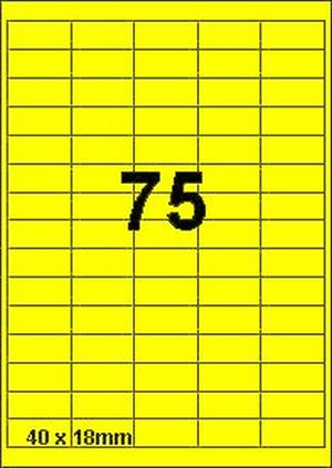 DBS etiketten 40 x 18 mm, 75 per blad, fluo geel, 200 vel