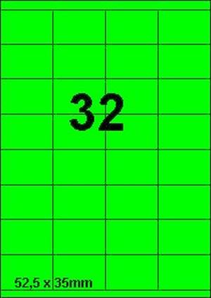 DBS etiketten 52,5 x 35 mm, 32 per blad, fluo groen, 200 vel