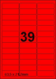 DBS etiketten 63,5 x 21,2 mm, 39 per blad, fluo rood,200 vel
