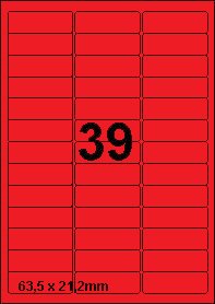 DBS etiketten 63,5 x 21,2 mm, 39 per blad, rood, 200 vel