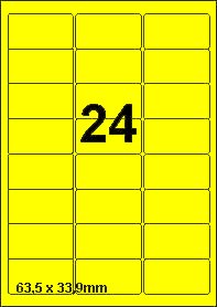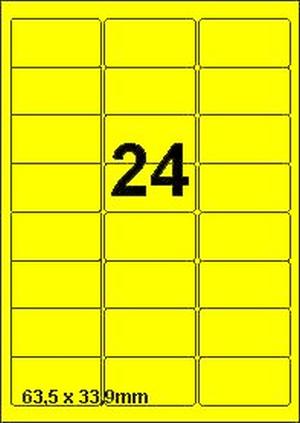 DBS etiketten 63,5 x 33,9 mm, 24 per blad, fluo geel,200 vel