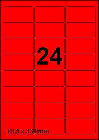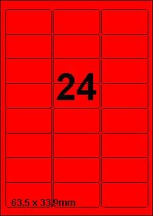 DBS etiketten 63,5 x 33,9 mm, 24 per blad, fluo rood,200 vel
