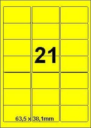 DBS etiketten 63,5 x 38,1 mm, 21 per blad, fluo geel,200 vel