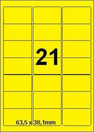 DBS etiketten 63,5 x 38,1 mm, 21 per blad, geel, 200 vel