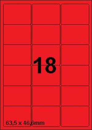 DBS etiketten 63,5 x 46,6 mm, 18 per blad, rood, 200 vel