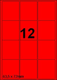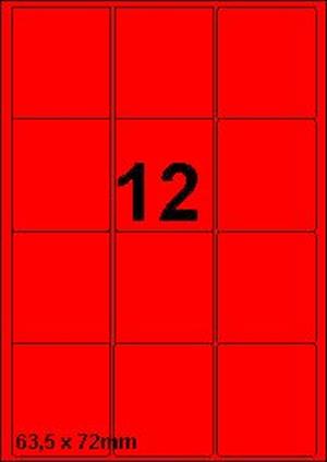 DBS etiketten 63,5 x 72 mm, 12/blad, fluo rood 200 vel