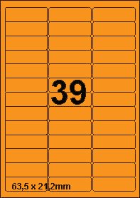 DBS etiketten 63,5x21,2mm, 39 per blad,fluo oranje, 200 vel